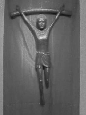 | The symbol of Jesus Handicapped, body disabled by continued contradictions of our human condition, emerges from the context of Cambodia. Countless Cambodians live with the results of weapons of war. Picture from Jesuit Service Cambodia. |