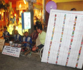 “What are you celebrating?”asked someone. “Today (16th February 2010) we got the 30 ratifications on the cluster munition treaty!” This became the mantra of the evening for us all as people queried and became interested. In half-an-hour we had met people from 55 different countries! Some came closer to the flags-checked chart to see if their countries have signed/ratified the treaty (including the ban landmines treaty). “Please tell your government to sign and ratify the treaty,” exhorted Tun Channareth (Ambassador to the International Campaign to Ban Landmines, actively involved in the campaign to ban cluster bombs; he is a landmine survivor without both his legs).