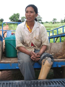 | “I would like to tell people in the cities that landmines are still waiting to kill or injure the villagers like me in the border.” Ms Wiboonrat Chanchoo, Landmine Survivor/Chairperson of the People with Disabilities Organization, Aranyaprathet district, Sakaeo Province; Accident date: 29 January 1996 |